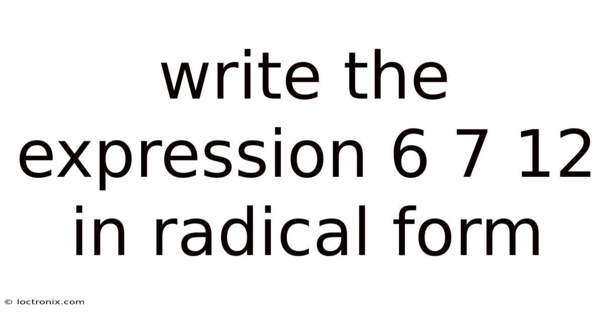 Understanding the expression 6 7 12 in radical form is a fascinating journey into the world of mathematics, where numbers transform into roots and powers. This topic not only challenges our mathematical thinking but also deepens our appreciation for the elegance of mathematical structures. Whether you are a student, teacher, or curious learner, grasping this concept can reach new perspectives on how numbers interact with each other. Let’s explore this idea step by step, ensuring clarity and engagement throughout That's the part that actually makes a difference..