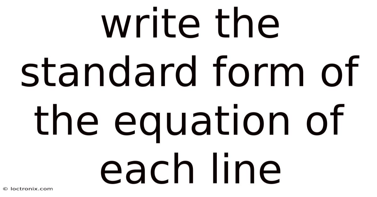 The Standard Form of the Equation of Each Line is a fundamental concept in algebra and coordinate geometry, serving as a universal method to describe the relationship between variables on a Cartesian plane. This form, typically expressed as Ax + By = C, provides a structured and unambiguous way to represent linear relationships, making it indispensable for solving systems of equations, graphing lines, and analyzing geometric properties. Unlike slope-intercept form, which emphasizes the rate of change, the standard form focuses on the balance between the variables and the constant term, offering a strong framework for mathematical analysis. Understanding how to derive, manipulate, and interpret this equation is crucial for students and professionals alike, as it underpins more advanced topics in calculus, physics, and engineering.
