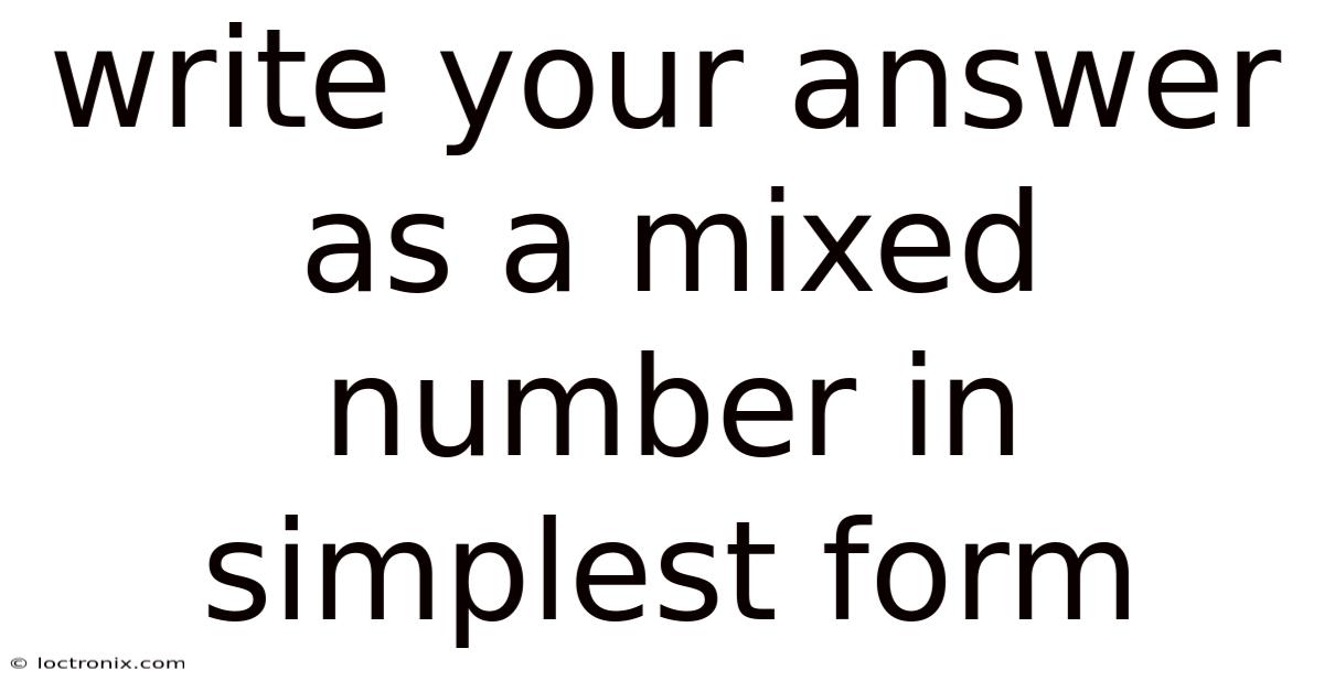 To write an answer as a mixed number in simplest form, you need to follow a clear set of steps. First, divide the numerator by the denominator. Now, the remainder becomes the new numerator of the fraction part, while the denominator stays the same. The quotient becomes the whole number part of your mixed number. Finally, you should simplify the fraction part if possible But it adds up..